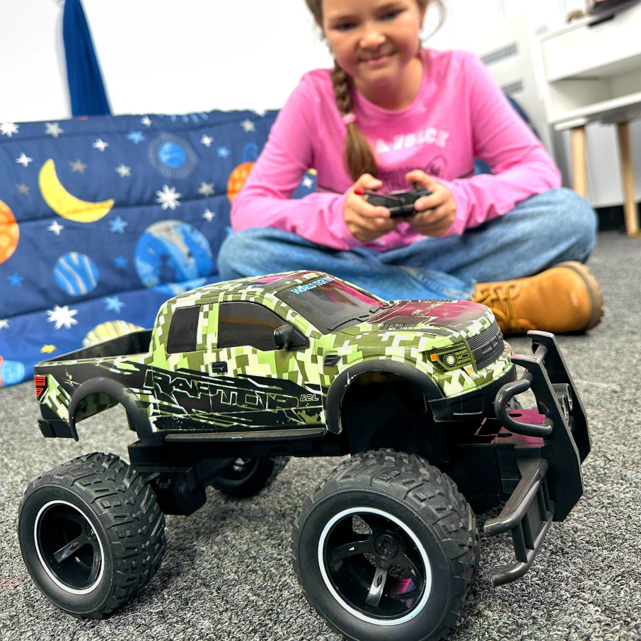 Conquer any terrain with the Ford F-150 SVT Raptor RC Truck Camo Edition, a powerful remote-control pickup inspired by the legendary Ford F-150 SVT Raptor. Designed for speed, control, and durability, this truck brings the thrill of off-road racing to your hands.